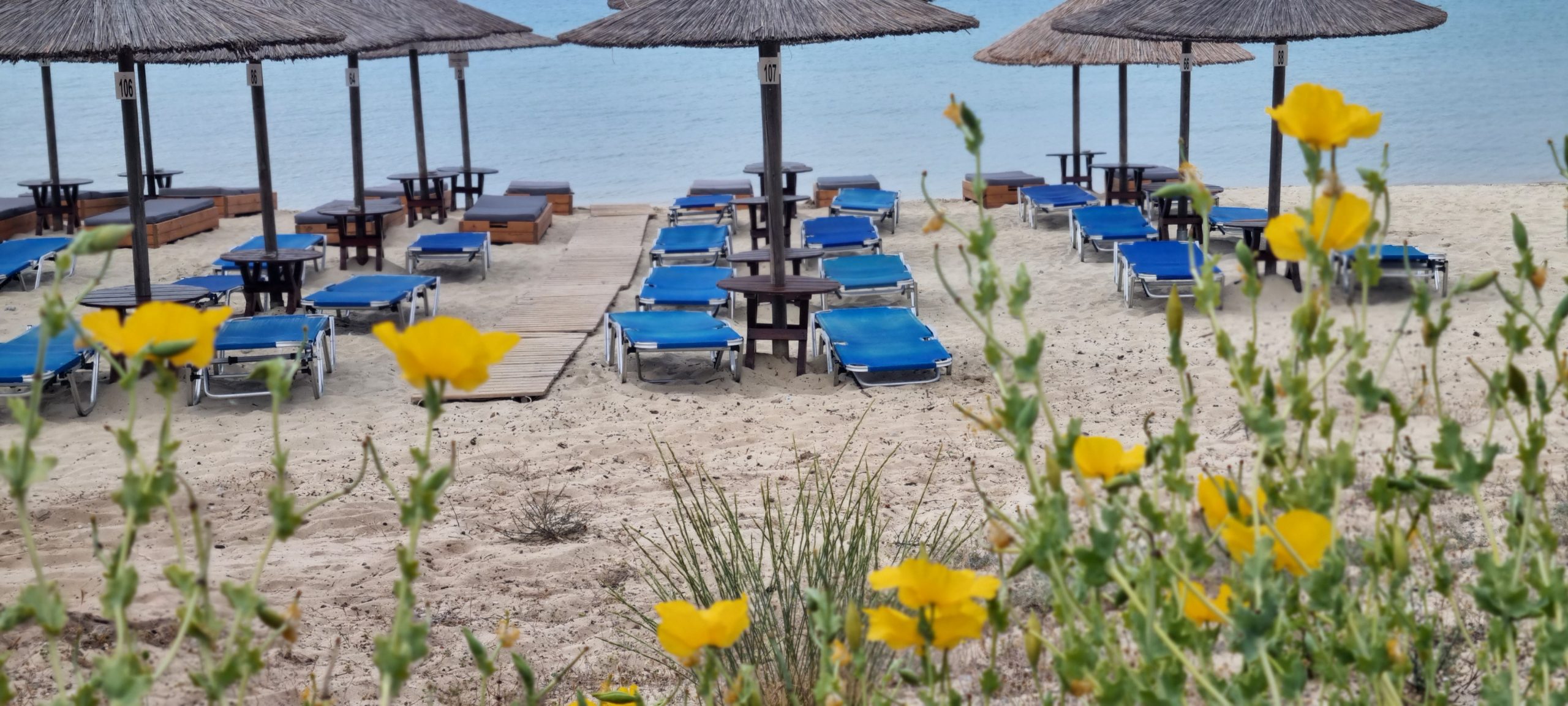 Αν όμως ξυπνήσεις νωρίς το πρωί, τότε θα αντικρίσεις μια απέραντη πισίνα με δροσερά γαλαζοπράσινα νερά, καθρέφτης του πάτου της θάλασσας. Οι γλάροι πετάνε και ο ήλιος ξεκινάει την πρωινή του βόλτα, πριν σηκωθεί ψηλά και μας ζεστάνει. Καντίνες της περιοχής ανοίγουν πρωί πρωί και μπορείς να απολαύσεις τον ωραιότερο ελληνικό καφέ που έχεις πιει. Μια που ήρθες νωρίς, μπορείς να βάλεις τη δική σου ομπρέλα στη χρυσαφένια αμμουδιά, όπου σου αρέσει και να απολαύσεις την ησυχία.