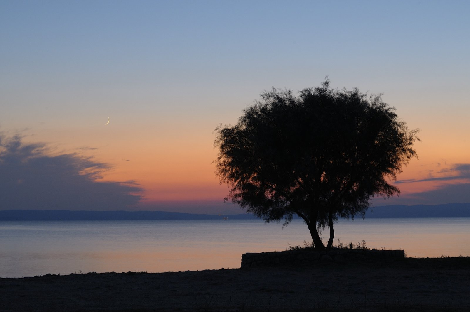 Είναι αργά το απόγευμα γύρω στις οκτώ που ο ήλιος ξεκινά να χάνεται, αδειάζει σιγά σιγά η παραλία, τα χρώματα του ουρανού γίνονται χρυσοκόκκινα, το χρώμα της θάλασσας γκριζάρει μαζί με τον ουρανό και το τοπίο είναι μαγευτικό.